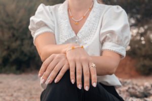 Plus qu’un simple accessoire ; c’est une création unique. Les perles sont soigneusement sélectionnées pour garantir une uniformité de couleur et de texture, tandis que le fermoir doré assure une fermeture sûre et élégante. Chaque détail a été pensé pour allier mode et fonctionnalité, ce qui en fait un ajout intemporel à votre collection de bijoux.