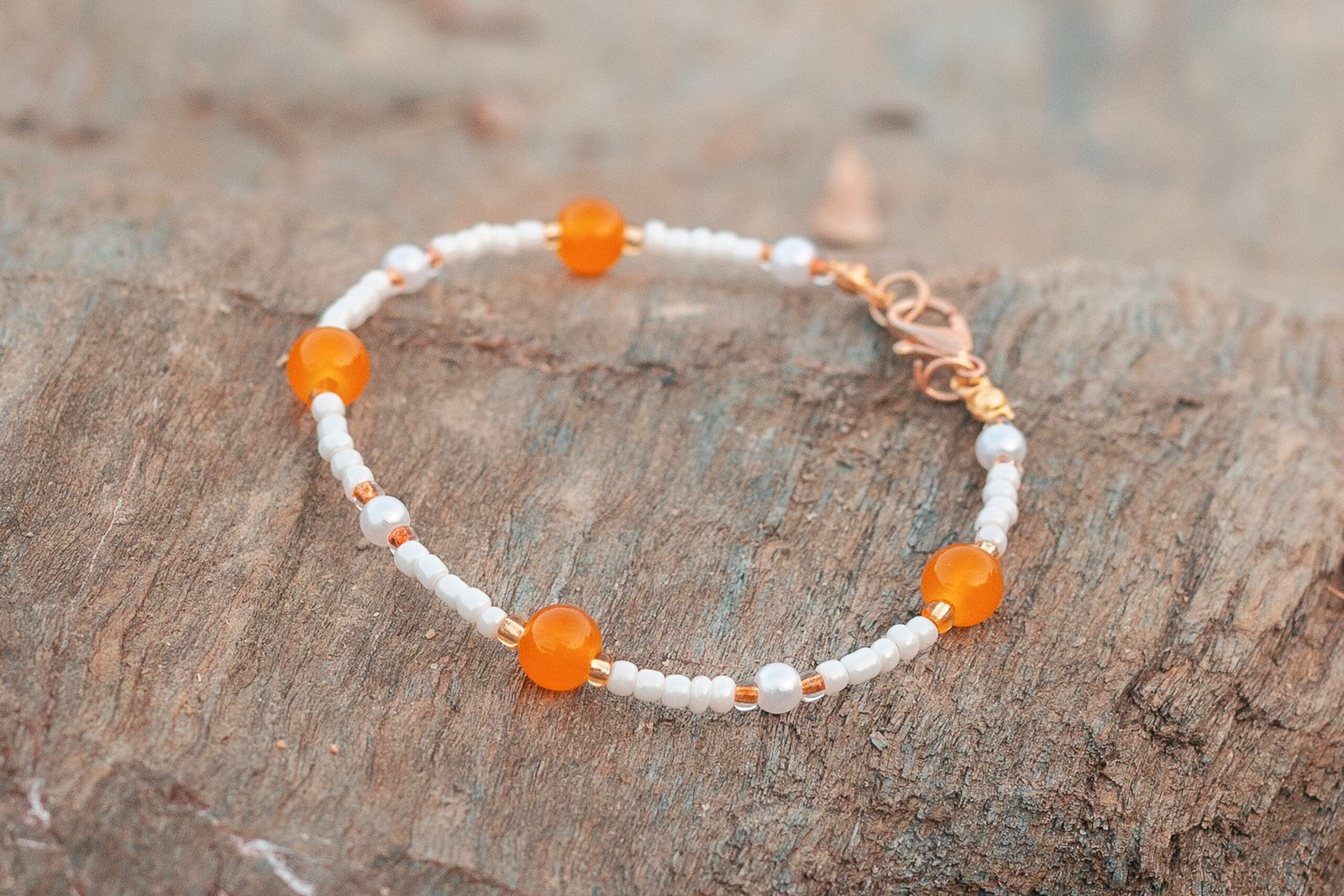 Ce bracelet a été conçu afin que l’orange vif et le blanc apaisant des perles s’harmonisent parfaitement. Composé de perles de différentes tailles, ce bijou apporte une touche d’élégance et de personnalité à toutes vos tenues. Que vous soyez habillé pour une occasion spéciale ou à la recherche d’un accessoire du quotidien, ce bracelet sublimera votre look en toute simplicité.